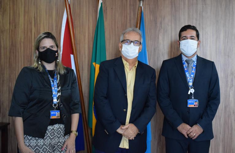 A reunião aconteceu no gabinete da Presidência e também contou com a presença da Superintendente Executiva de Governo da Caixa em Alagoas, Maria Carolina Bandeira.