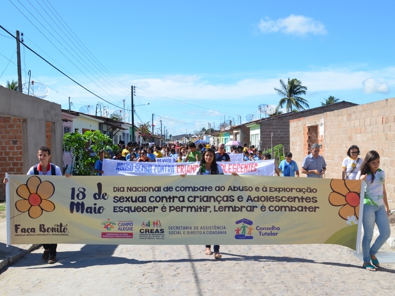Em alusão ao Dia Nacional de Combate ao Abuso e a Exploração Sexual contra Crianças e Adolescentes, a prefeitura de Campo Alegre, através da Secretaria de Assistência Social e Direito a Cidadania, o Centro de Referência Especializado em Assistência Social – Creas, e os Conselhos Tutelares, realizaram nesta quarta, 18, e quinta-feira, 19, na sede do município e distrito Luziápolis duas grandes caminhadas em adesão a “Faça Bonito”, cujo objetivo de chamar a atenção da sociedade para a importância da prevenção e do enfrentamento do problema da violência sexual praticada contra crianças e adolescentes.