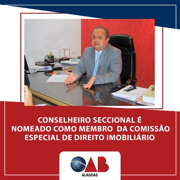 O Conselheiro Seccional e advogado alagoano Anthony Lima vai representar o Estado na Comissão Especial de Direito Imobiliário. A nomeação foi publicada pelo Conselho Federal, na última quinta-feira (23), através da portaria número 134/2016, assinada pelo presidente da OAB, Cláudio Lamachia. Anthony Lima, que é uma das referências em Direito Imobiliário no Estado, assumiu na OAB Alagoas a presidência da Comissão de Direito Imobiliário, onde tem buscado atuar em vários temas em defesa dos advogados e da sociedade.