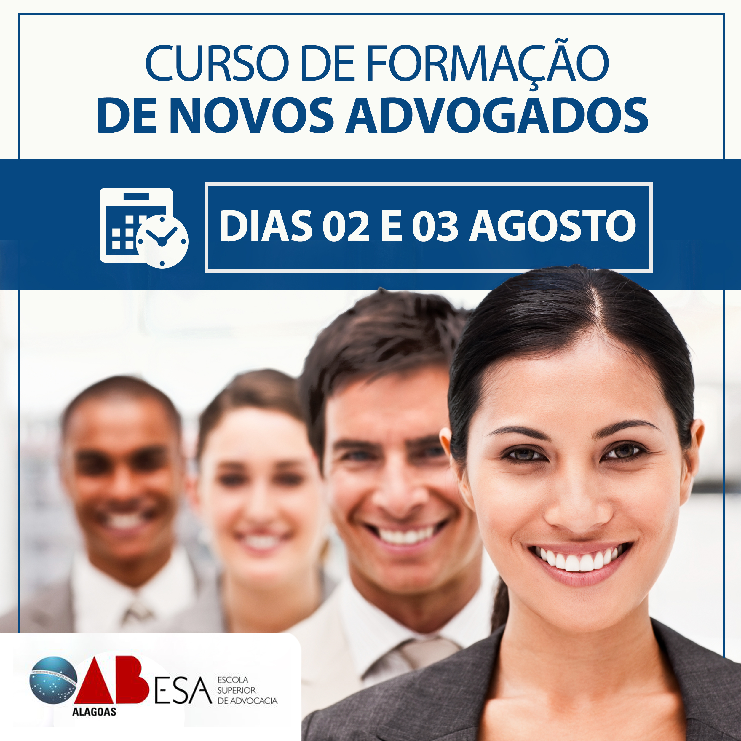 Os advogados que irão ingressar nos quadros da Ordem dos Advogados do Brasil Seccional Alagoas (OAB/AL) prestam juramento no próximo dia 4 de agosto, em solenidade que acontecerá na sede da instituição em Jacarecica. Antes, eles participarão de dois dias de Curso de Formação, atividade que já virou tradição e é realizada pela Escola Superior de Advocacia (ESA).
