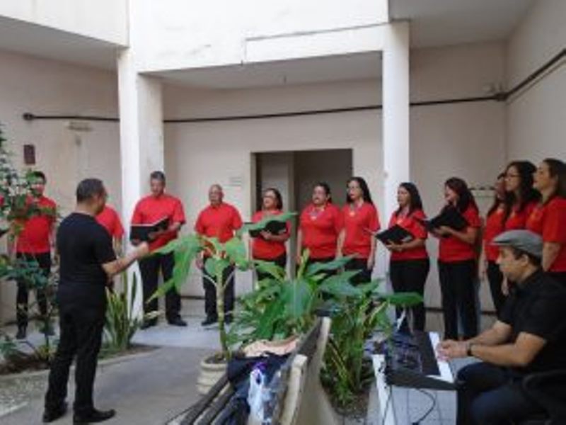A Secretaria Municipal de Saúde (SMS) antecipou para esta sexta-feira, as comemorações alusivas ao Dia dos Pais, celebrado no próximo domingo, dia 14 de agosto. Realizada no pátio interno do órgão, a homenagem aos servidores foi feita por meio dos acordes do Coral Saúde em Canto, formado por 16 servidores da SMS que, sob a regência do maestro Gustavo Campos, entoaram músicas populares e uma versão musicada do Pai Nosso.