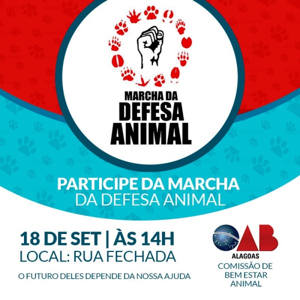 A Marcha irá acontecer em todo o Brasil e deve reunir centenas de organizações que protegem animais e amantes da causa. “O objetivo da Marcha da Defesa Animal é pleitear o aumento de pena para os crimes de maus tratos, divulgar os direitos contidos na lei federal de crimes ambientais, conscientizar e orientar a população sobre a proteção dos animais. Além de arrecadar fundos para a sociedade protetora dos animais que estão sem recursos para continuar fazendo esse trabalho de acolhimento”, contou a presidente da Comissão de Bem Estar Animal da OAB Alagoas, Rosana Jambo, que está à frente do evento.
