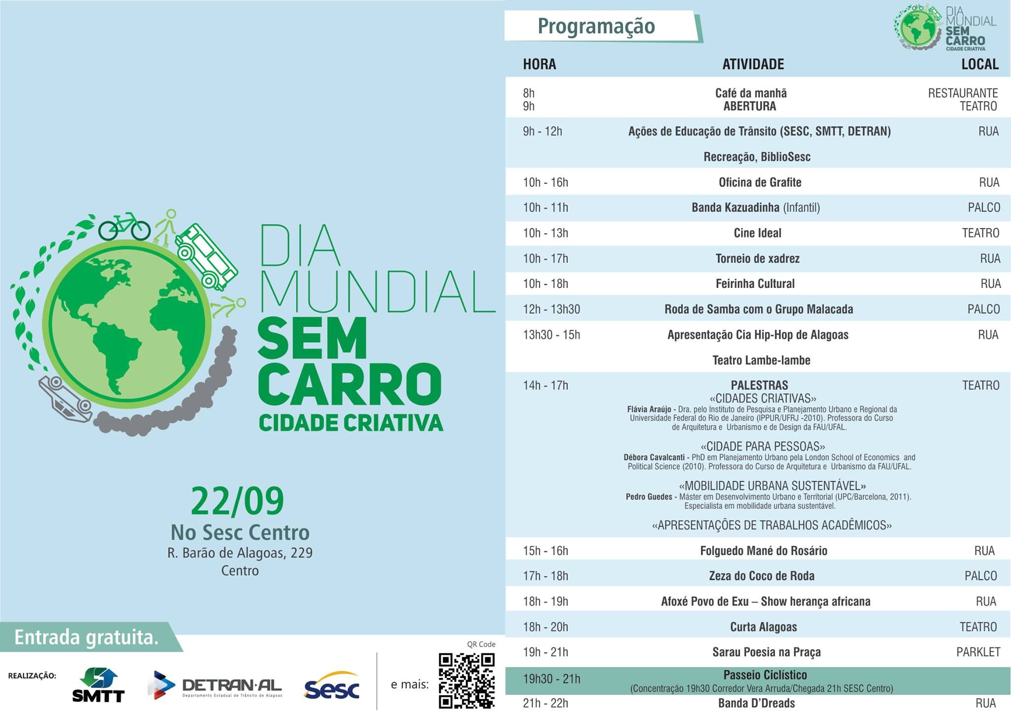 Em Maceió, o DMSC desse ano terá como tema “Cidade Criativa”, reunindo profissionais de diversos campos para pensar e propor soluções criativas que tenham a arte e a cultura como propulsoras de transformação urbana e social, no intuito de conscientizar o cidadão de sua responsabilidade no trânsito, valorizando ações do cotidiano e visando a participação de todos para o alcance da segurança viária.