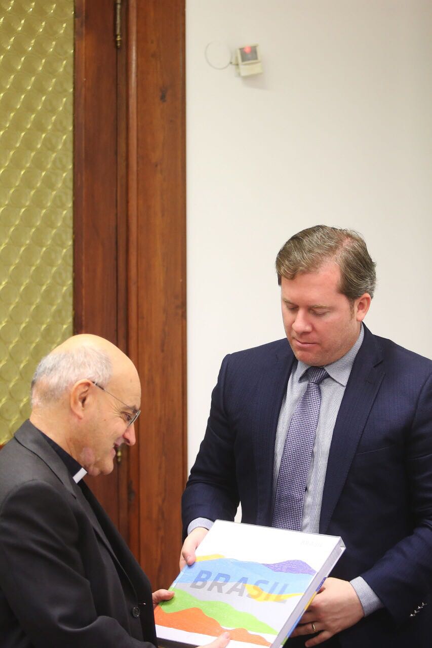 Na manhã desta quarta-feira (4), o ministro encontrou-se com o Papa Francisco e o convidou para conhecer os roteiros religiosos do Brasil. A missão oficial ao Vaticano faz parte de uma série de ações que o MTur tem adotado para reforçar esse segmento de uma forma geral e, mais especificamente, a Rota das Missões Jesuíticas, que une o Brasil, Argentina, Uruguai, Bolívia e Paraguai.