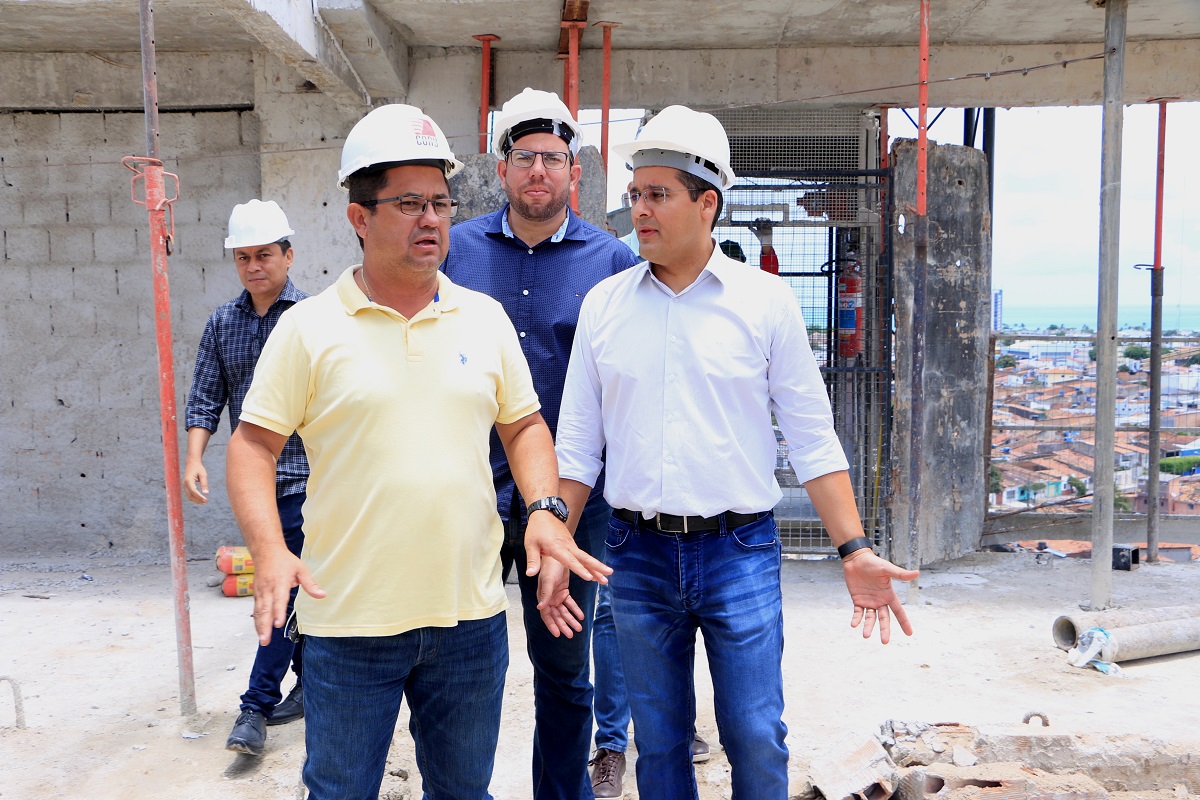 A primeira parada foi no bairro do Poço, na Avenida Comendador Leão, dentro da imensidão horizontal do primeiro hospital público dedicado exclusivamente às mulheres. Conforme o relatório técnico emitido pela Seinfra, órgão responsável pela fiscalização da obra, as frentes de trabalho progrediram com as instalações elétricas, hidrossanitárias e de gases medicinais, climatização, revestimento externo e vedações em alvenaria.