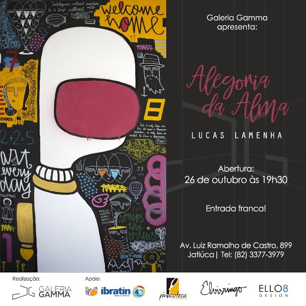 Depois de estrear em Londres, com a exposição Hi World, e de integrar o Projeto "A Growing Culture", onde participou de uma exposição coletiva em Nova York, com artistas de várias partes do mundo, Lucas finalmente faz sua estreia em Maceió, sua cidade natal. A mostra promete surpreender o público e a crítica, pelos traços únicos e singulares, já apresentados pelo alagoano. "Alegoria da Alma" irá trazer obras intimistas, que reunirá desenhos e pinturas inéditas, onde será apresentada ao público a construção de uma expressão singular, através de personagens, frases e signos.