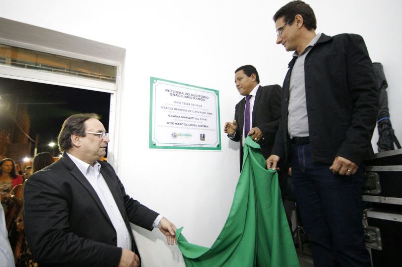 Na ocasião, foi feito o descerramento da placa de reinauguração do Auditório pelo prefeito Júlio Cezar, o vice-prefeito Márcio Henrique e governador em exercício Luciano Barbosa. A solenidade contou com apresentações da Orquestra Filarmônica Palmeirense, do balé do Centro Educacional Cristo Redentor e do cantor alagoano Eliezer Setton. O prefeito Júlio Cezar, grande incentivador da cultura palmeirense, falou dos esforços em colocar Palmeira novamente na rota da cultura alagoana e das parcerias feitas para revitalizar o Auditório. “Há algumas semanas esse prédio estava abandonado e quem nos visitava cobrava uma reforma. A obra da Casa Museu avança e em dezembro estará pronta. Essa obra não é do governo, é de vocês. E o governador Luciano Barbosa já disse que fizéssemos um projeto para climatizar o auditório. Também conseguiremos com o SESC a vinda de um cinema que vai ficar instalado no auditório da Casa. Cidade nenhuma tem a veia cultural como a nossa, pois a maior riqueza de um povo é a cultura”, disse Júlio.