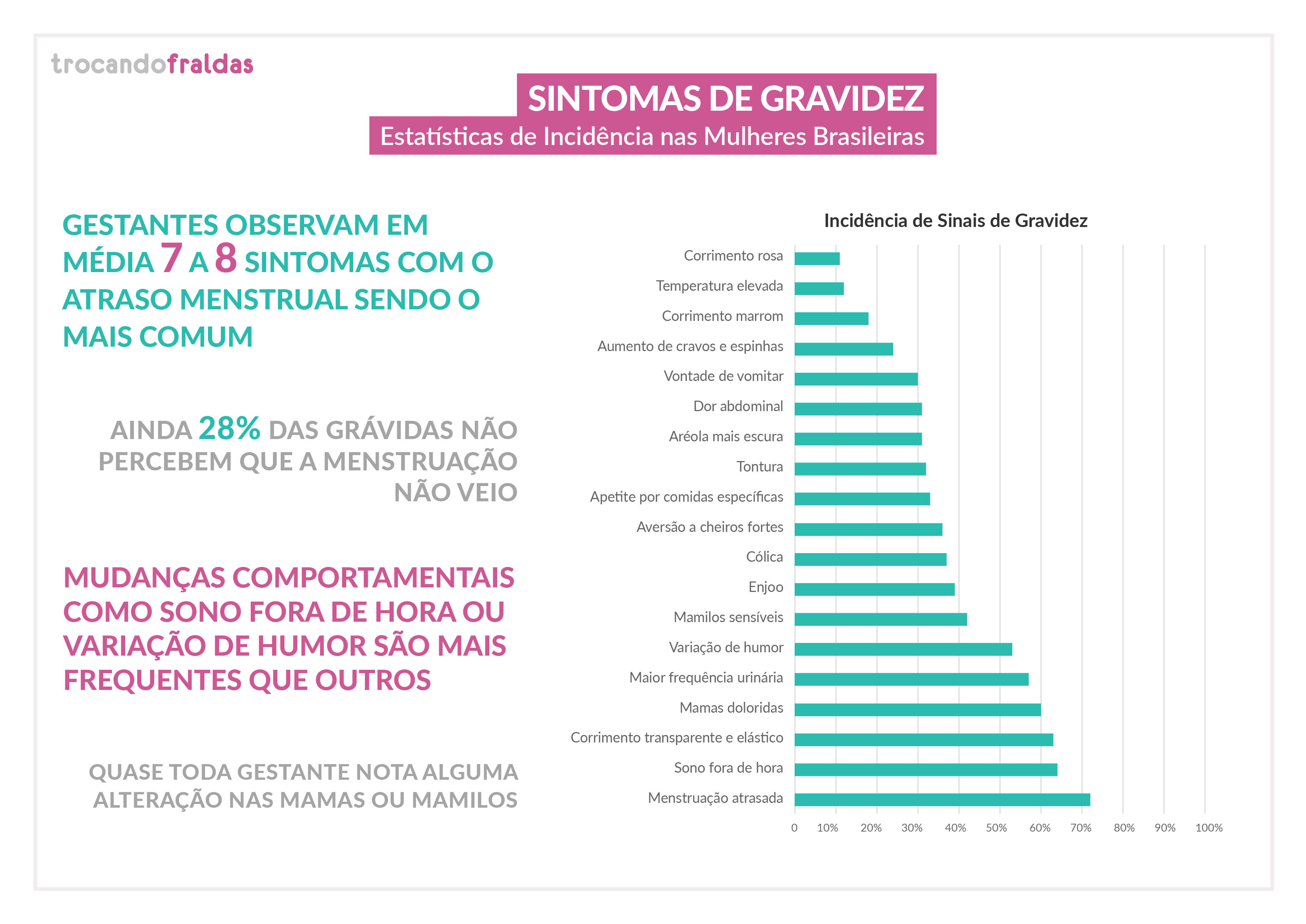 Uma pesquisa foi realizada pelo portal Trocando Fraldas entre os dias 7 e 12 de setembro com 10 mil mulheres de todo o país, para tentar compreender a percepção do público feminino em relação aos sintomas de gestação.