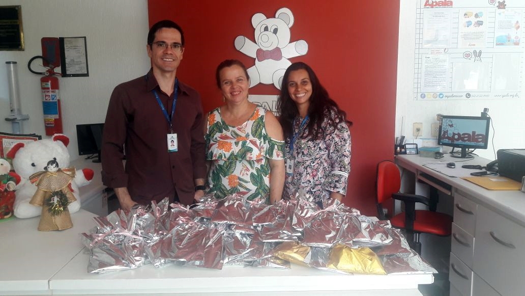 Foram encaminhados 60 lencinhos para a Apala, que irá distribuir para crianças no próximo dia 30 de novembro, na reunião da Família Apala, na sede da Instituição, no bairro da Gruta de Lourdes, em Maceió. O evento é uma confraternização que conta com uma palestra sobre saúde e entregas de cestas básicas. Todos os colaboradores estão convidados a participar e conhecer um pouco mais sobre a Associação.