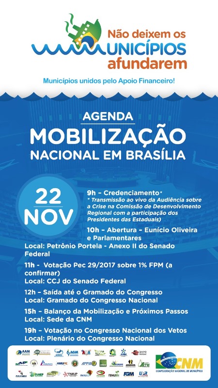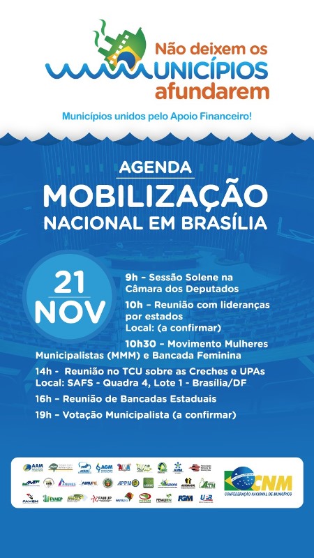 A campanha foi criada para chamar a atenção das autoridades ao colapso das finanças locais. O objetivo é pressionar o Congresso Federal com pautas municipalistas que possam aliviar as contas das prefeituras que estão com mais responsabilidades e o repasse federal abaixo do esperado ou defasado. Para o presidente da AMA, Hugo Wanderley, é preciso unir forças e lutar pelo direito dos municípios.