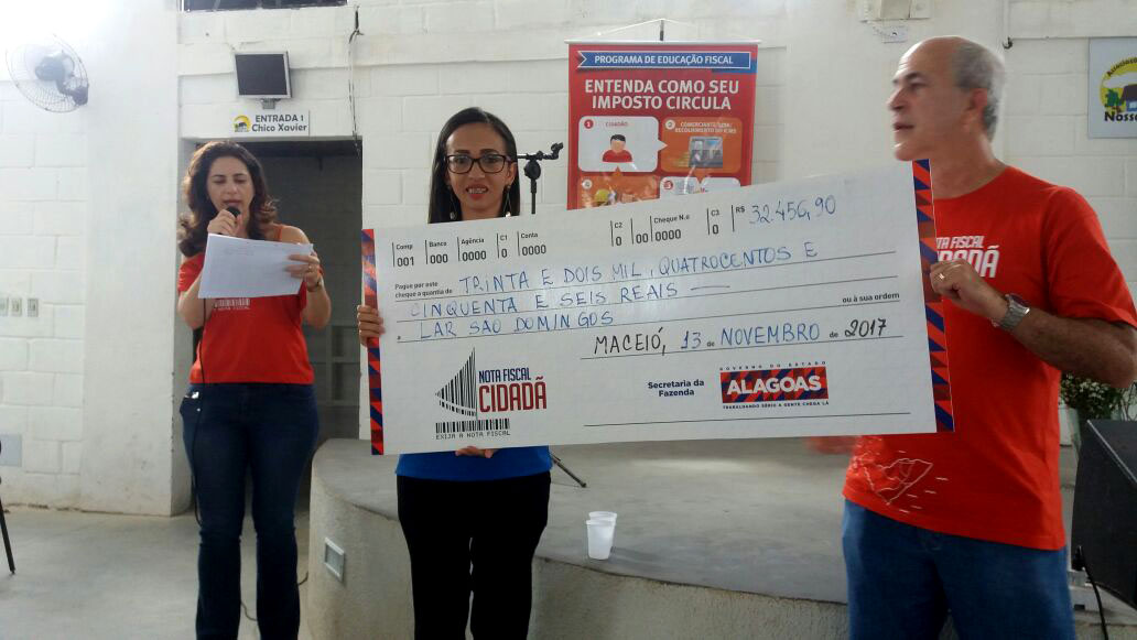 O Lar São Domingos recebeu o prêmio máximo do sorteio do Dia das Crianças do Programa Nota Fiscal Cidadã, ocorrido em outubro deste ano. Com o prêmio recebido esta semana, a instituição dá início à execução parcial do projeto de combate a incêndio do prédio sede. Prestes a completar 100 anos de atividades ininterruptas, a sociedade filantrópica funciona em um casarão colonial situado no bairro de Mangabeiras, que já faz parte da paisagem histórica da capital alagoana.