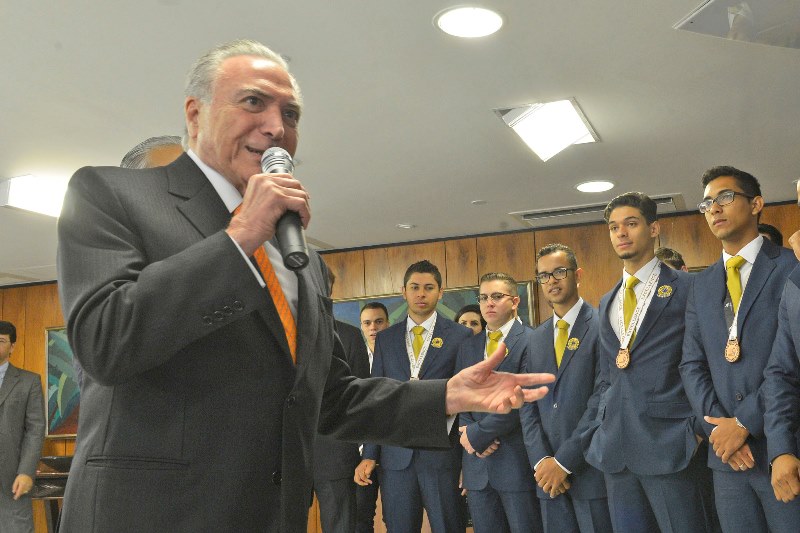 Os alunos do Serviço Nacional de Aprendizagem Industrial (Senai) que participaram da Worldskills 2017 (disputada em Abu Dhabi) foram recebidos pelo presidente Michel Temer, no Palácio do Planalto, nessa quarta-feira, 22. Entre eles, o alagoano Renato Jucá, aluno do Senai/AL, que conseguiu o Certificado de Excelência na ocupação Gestão de Sistemas de Rede.