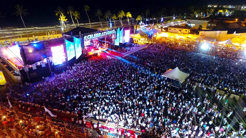 O maior réveillon all inclusive do Brasil, o Réveillon Celebration, realiza a sua 14ª edição com o tema “O Brasil celebra aqui”, num dos mais belos cartões-postais da capital alagoana, a beira-mar de Maceió. A praia queridinha dos amantes do surf, localizada em Cruz das Almas, promete as melhores experiências na festa da virada 2018. Com o clima praiano da estação mais quente do ano, os pontos altos da festa são as atrações musicais de peso, o open bar premium, o cardápio diversificado, a tenda eletrônica e uma bela queima de fogos para receber 2018 em grande estilo.