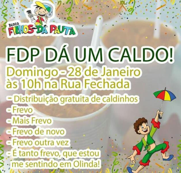 O evento recebe o nome de “Filhos da Pauta dá um Caldo” porque no ato da compra do abadá do Bloco, o folião já tem garantido o seu caldinho de feijão ou vaca atolada. É só escolher.