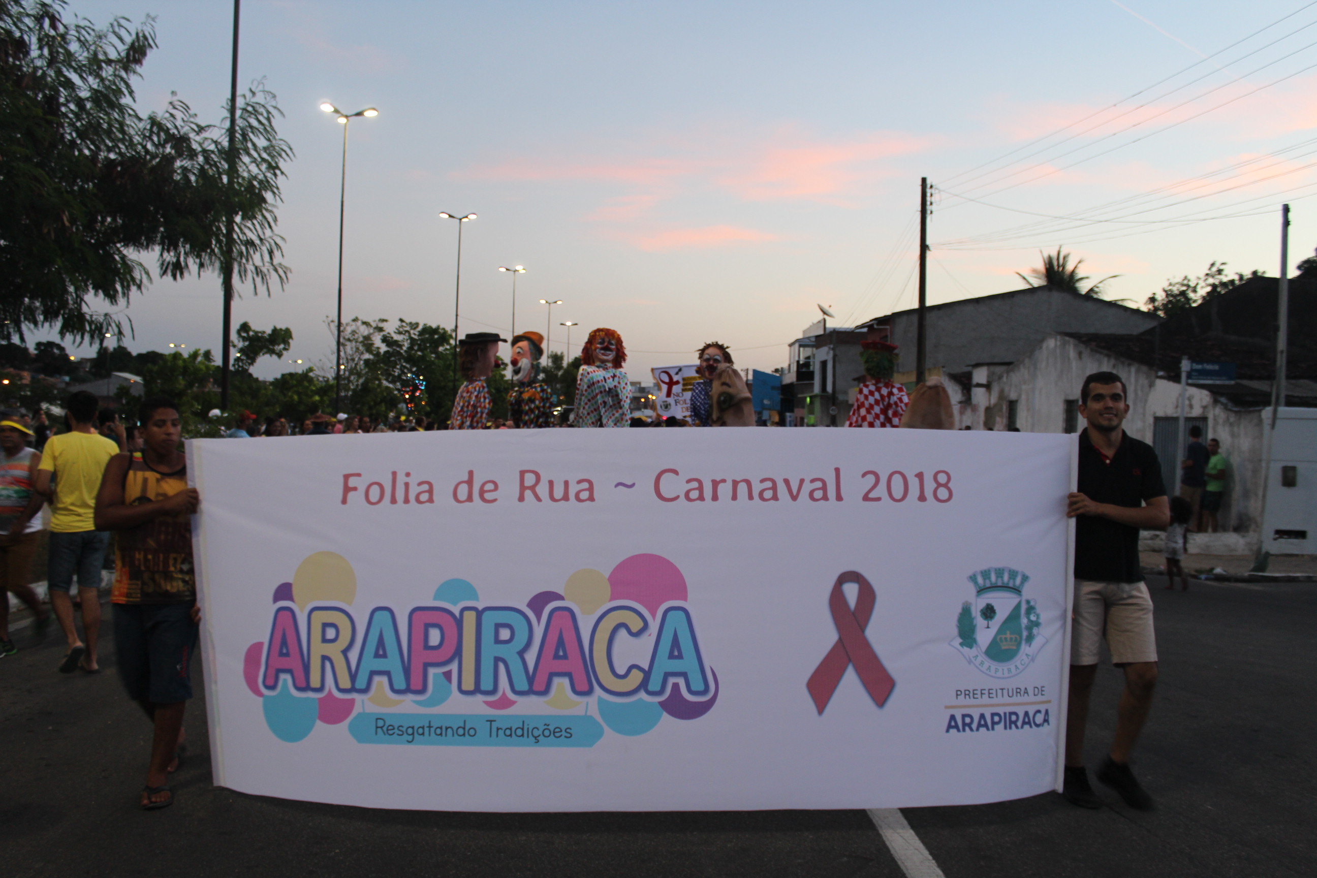 Com o tema “Arapiraca: resgatando tradições”, os blocos Zum Zum, A Pinta, Bandinha do Dedé e Tengo Tengo saíram à frente do desfile, junto com o Pinto da Madrugada, puxando os foliões dos outros 14 blocos. Tudo supervisionado pela Polícia Militar, guardas da Superintendência Municipal de Transportes e Trânsito (SMTT), seguranças municipais e Corpo de Bombeiros, garantindo assim a segurança da população.