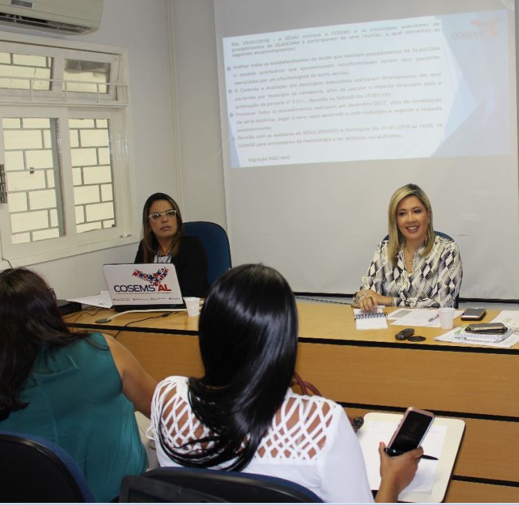 A redução de recursos financeiros do Ministério da Saúde para pacientes dos municípios alagoanos que precisam do tratamento de Glaucoma foi a pauta central da 1ª Reunião da Diretoria Ampliada do Conselho de Secretarias Municipais de Saúde de Alagoas (Cosems) do biênio 2017-2019, que reuniu nesta segunda-feira (5) no auditório da entidade gestores da Saúde e técnicos dos municípios e da Secretaria de Estado da Saúde de Alagoas (Sesau).