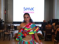 Sob a supervisão dos instrutores do Senac, alunos e egressos dos cursos de Moda confeccionaram e apresentaram peças exclusivas em um desfile que destacou o conceito de moda sustentável, produzida a partir de materiais residuais e reaproveitados.