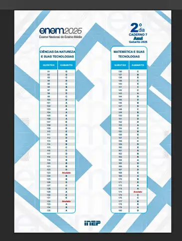 A publicação dos gabaritos foi antecipada em um dia, porque o Inep identificou, na internet, relatos de vazamento de questões similares às que caíram no Enem 2025, em uma transmissão ao vivo no Youtube, dias antes das provas.