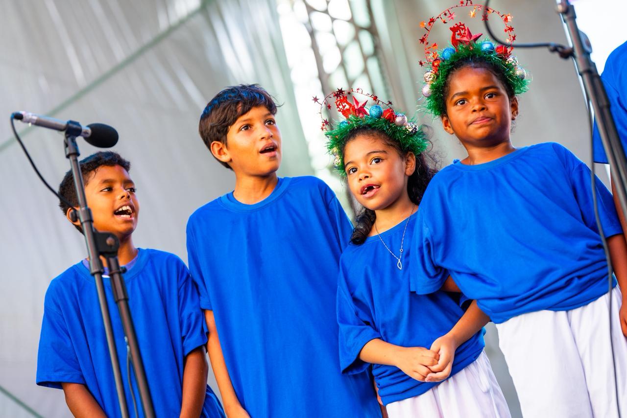 O palco central, na Praça Dois Leões, recebeu o Coral da Escola Municipal Nosso Lar. O coral das escolas dos estudantes do tempo integral das escolas Floriano Peixoto e Pedro Barbosa, em parceria com a AABB, e por fim, a cantata natalina do grupo musical do Parque Biblioteca, do Benedito Bentes.