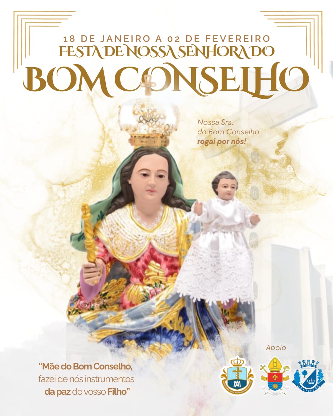 A festa esse ano inicia no dia 18 de janeiro e se estende até o dia de Nossa Senhora do Bom Conselho, 02 de fevereiro. Com o tema “Mãe do Bom Conselho, fazei de nós instrumentos da paz do vosso Filho”, a festa da padroeira convoca à reflexão.