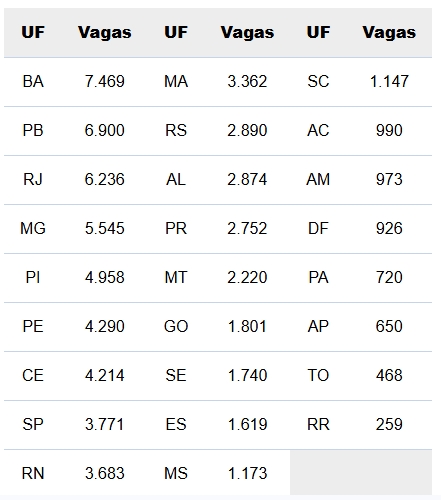 Confira as vagas de licenciaturas disponíveis no Sisu 2026, por unidade da Federação (UF):
