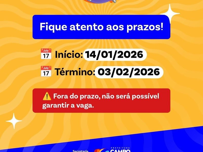 Quem não comparecer para o cadastro ou não enviar o recadastramento de forma online não será possível garantir a vaga.