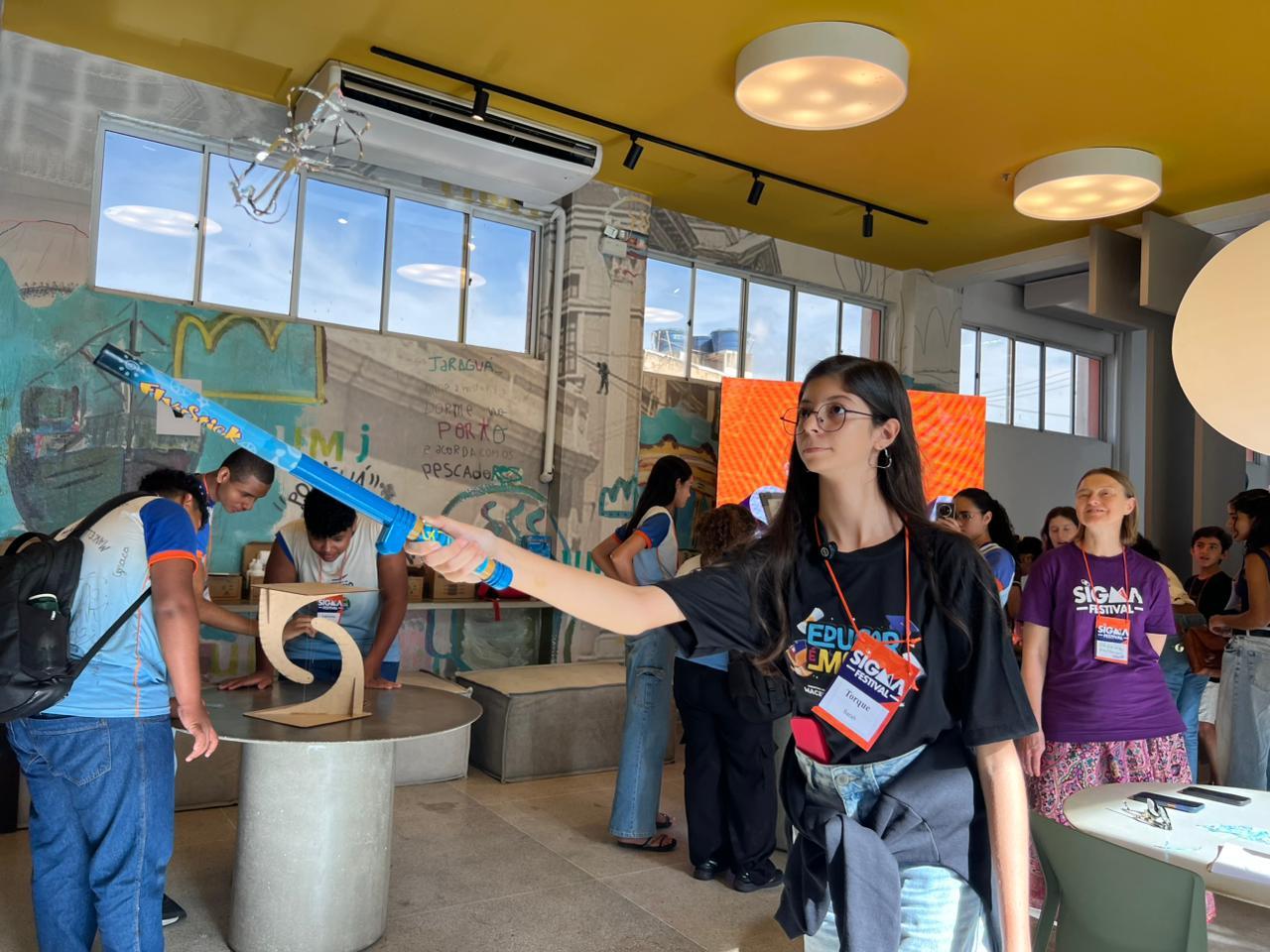 A aluna da Escola Municipal José Correia Costa, Angelina, ficou encantada com o SigmaFestival e descreveu um pouco das experiências vividas. “Em uma das atividades, envolvendo legumes e frutas, eu liguei um relógio e era como se a eletricidade passasse por mim, pelo meu dedo, e depois pela fruta para poder ligar o relógio. Eu achei muito legal”, explicou.