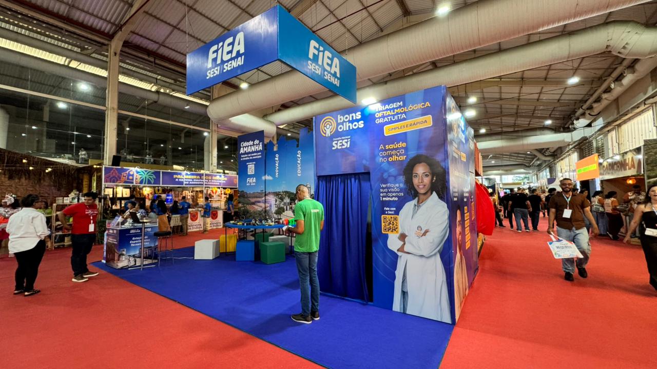 O lançamento e a apresentação prática do serviço Bons Olhos, do SESI Alagoas, foram um dos grandes destaques da Feira dos Municípios Alagoanos, realizada entre os dias 22 e 25, no Centro de Convenções de Maceió, em Jaraguá. Durante os quatro dias de evento, o estande SESI SENAI recebeu um grande fluxo de visitantes e realizou mais de 500 triagens oftalmológicas gratuitas, despertando a atenção do público pela rapidez, precisão e inovação do serviço.
