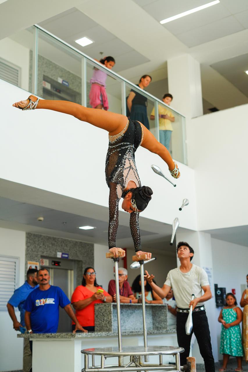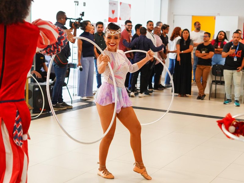 Artistas do circo promoveram performances rápidas e interativas no espaço de coleta, com números de bambolê, malabares, bailado, mágica e intervenções com palhaço, levando alegria a doadores, pacientes e profissionais de saúde, além de humanizar o ambiente e incentivar um gesto fundamental: salvar vidas.