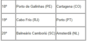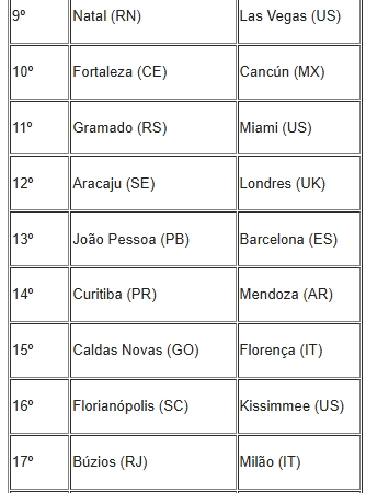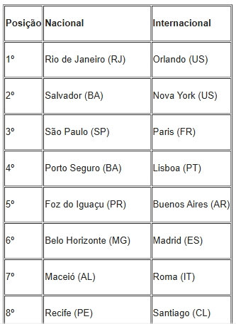 DESTINOS MAIS PROCURADOS
