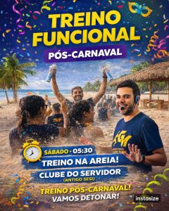 Após o sucesso do Carnaval no Clube do Servidor, o Treino Funcional com o professor de Educação Física e subsecretário de Esporte, Guilherme Matos, será a atração deste fim de semana. O treino será no sábado (21) a partir das 5h30 da manhã.