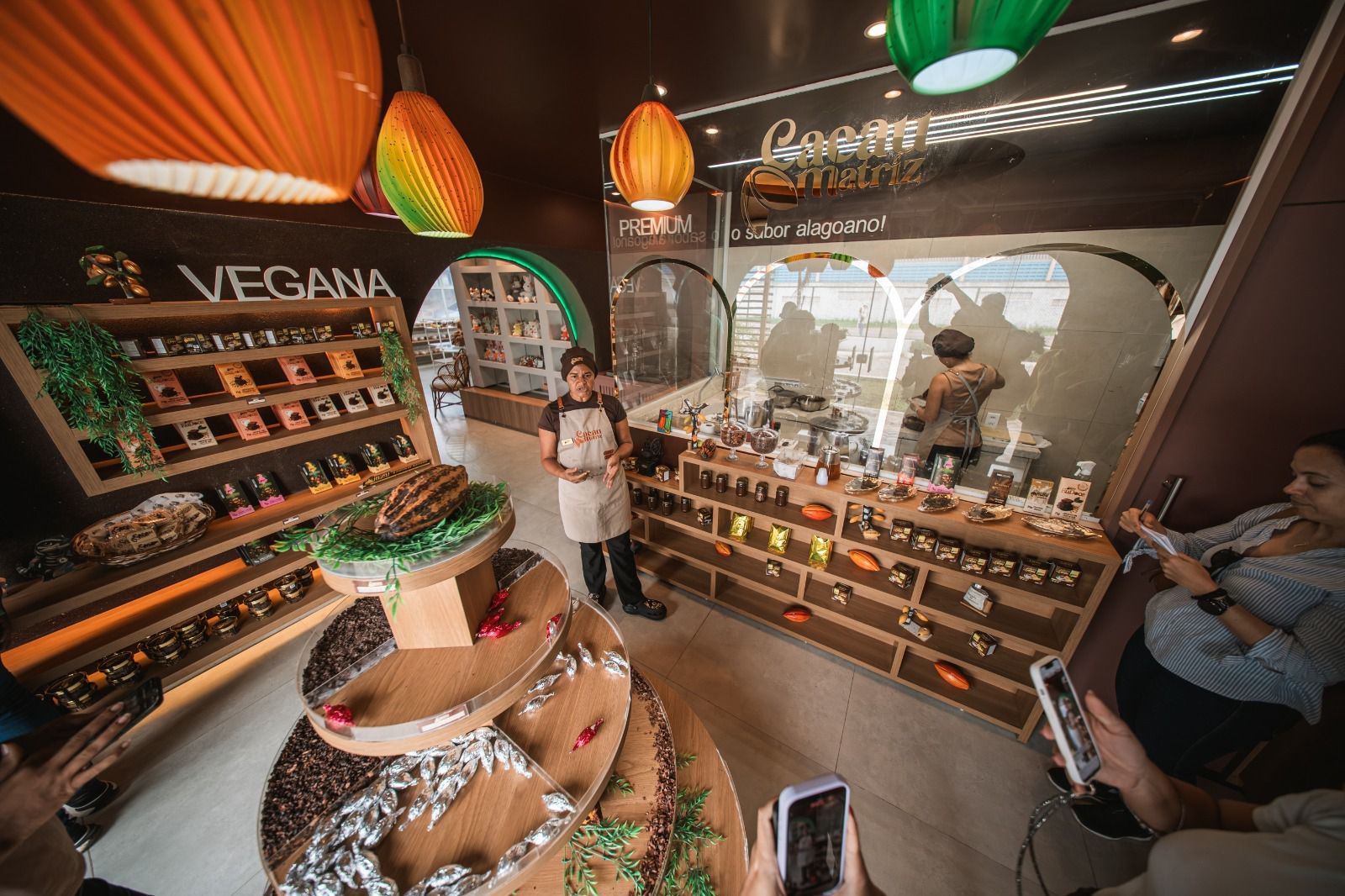 Inaugurada em 21 de novembro, a loja Cacau Matriz funciona como vitrine e mini fábrica. Ali, o cliente não apenas compra, mas acompanha a produção em tempo real. “Diferente das grandes franquias, aqui a pessoa não vem só comprar. Ela acompanha o processo, desde a plantação do cacau, até chegar na loja, e ver o chocolate sendo feito para logo depois degustar os produtos. É uma experiência completa".