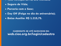 Para os cargos de estágio, os interessados devem se inscrever pela plataforma do CIEE: