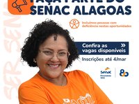 Reafirmando seu compromisso com a inclusão e a equidade de oportunidades, o Senac Alagoas reforça que as vagas também são destinadas a Pessoas com Deficiência (PCDs). Candidatos(as) que necessitem de atendimento diferenciado para a realização das etapas do processo seletivo devem informar, no ato da inscrição, por e-mail, o tipo de necessidade específica. A solicitação de condições especiais será atendida, segundo os critérios de viabilidade e de razoabilidade.