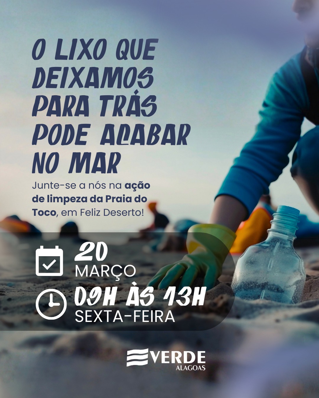 Outra ação programada é o Verde em Ação, cm mutirão de limpeza, na praia do Toco, na cidade de Feliz Deserto, no dia 20 de março. A iniciativa contará com a participação de cerca de 80 alunos da rede municipal de ensino. Durante a atividade, também será realizado um bate-papo sobre a importância da preservação ambiental, além de um momento de integração com aula de alongamento.