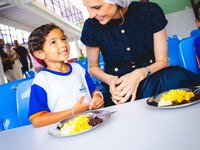 Durante visita a uma unidade do programa Gigantinhos, considerado o maior projeto educacional da história de Maceió, ela destacou que, além da oferta de alimentação, as crianças são acompanhadas por equipes preparadas, que orientam o momento das refeições e contribuem para o desenvolvimento infantil e a construção de hábitos saudáveis desde a primeira infância.