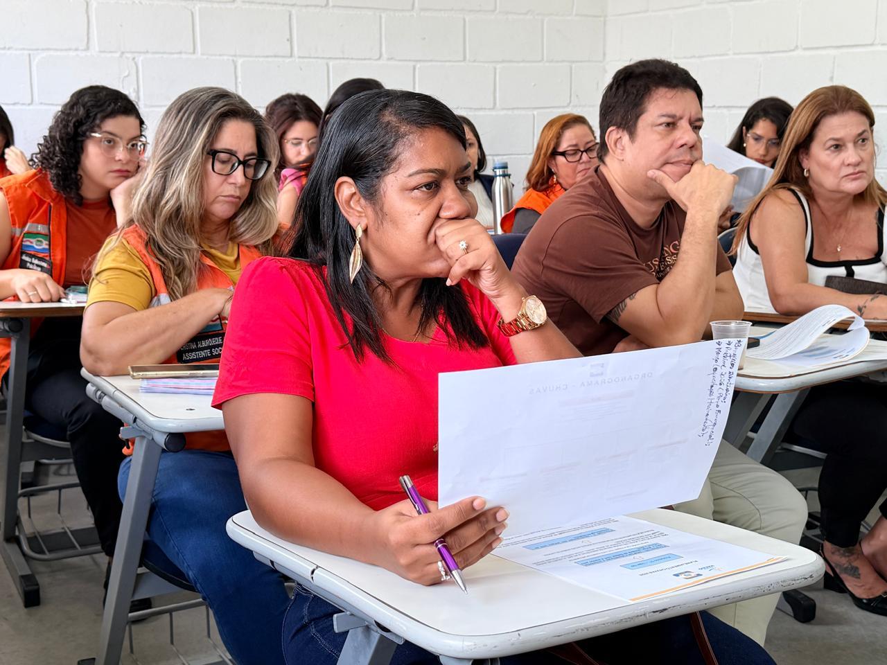 Servidores das secretarias que são parte do sistema de defesa civil participaram da reunião e sugeriram ações. Foto: Luís Eduardo Ramalho (estagiário)/ Ascom Defesa Civil Maceió