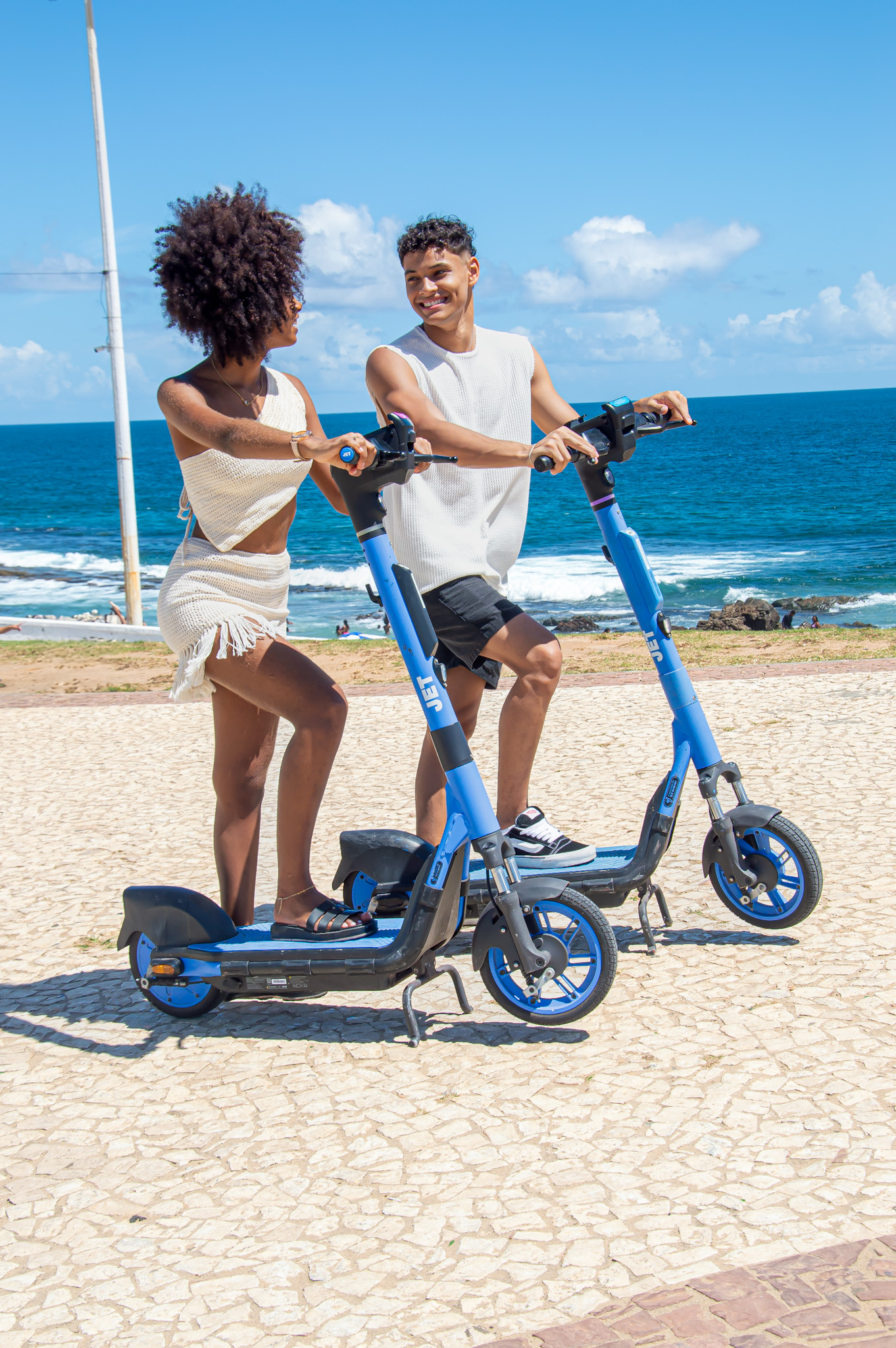Compactos, modernos e sustentáveis. Esses são os novos veículos azuis que irão compor o cenário de Maceió a partir desta semana. Trata-se de uma frota inicial de 150 patinetes elétricos e 75 bicicletas elétricas que será ampliada gradualmente e fará parte do cotidiano dos maceioenses. O serviço de aluguel oferecido pela JET endossa o desenvolvimento crescente da Capital alagoana como um dos principais expoentes de smart city no País.