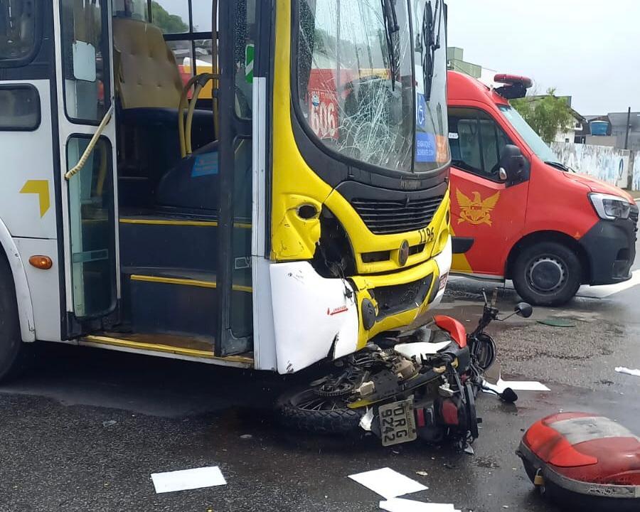 A Guarda Civil de Maceió prestou apoio às vítimas de um acidente de trânsito que ocorreu na manhã desta segunda-feira (13), no bairro da Gruta. A colisão entre uma motocicleta e um ônibus, em um cruzamento, deixou duas pessoas feridas.