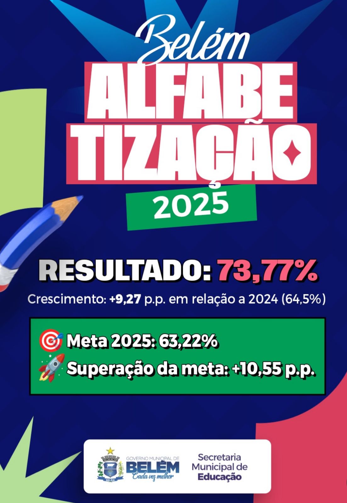 Com um trabalho sério voltado à alfabetização na idade certa, o município de Belém, através de diversas iniciativas consolidadas, superou a meta estadual e nacional alcançando o percentual de 73,77% de crianças alfabetizadas. Na última semana, a secretaria de educação aplicou o Provinha Belém - uma ação permanente que representa cuidado, acompanhamento e valorização dos alunos.