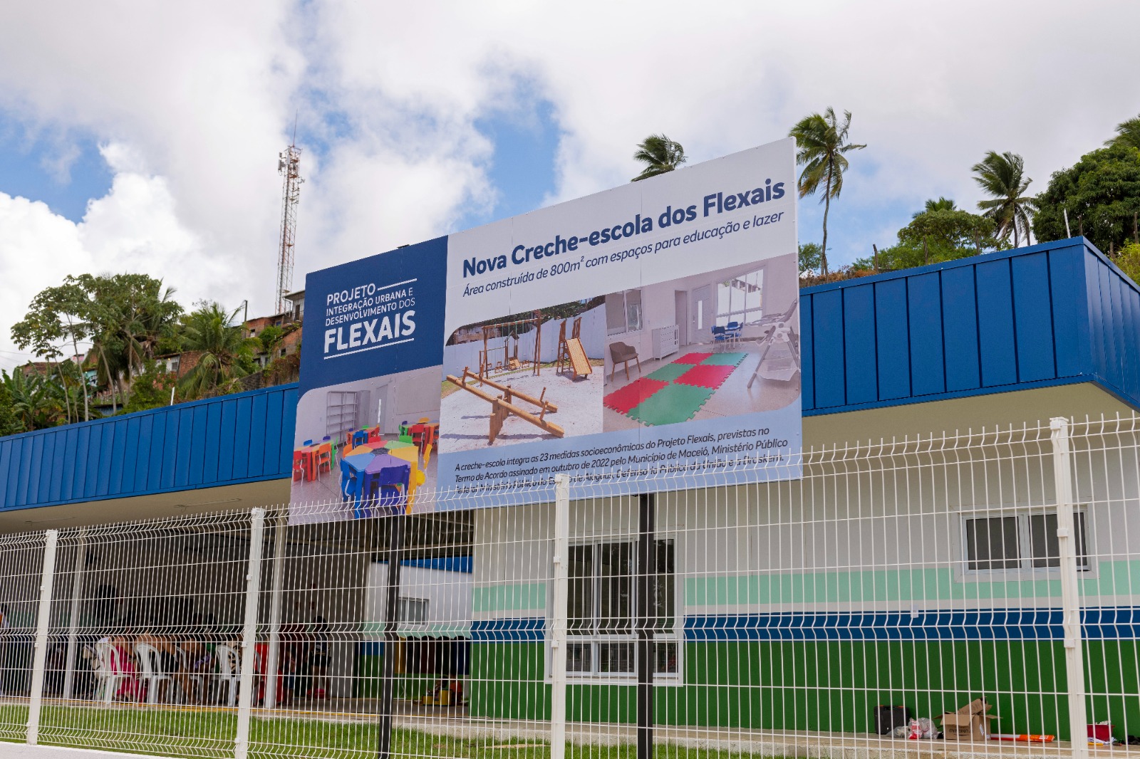 * A construção do CMEI está entre as medidas do eixo ‘Educação, Esporte, Lazer e Meio Ambiente’ do Projeto Integração Urbana e Desenvolvimento dos Flexais, que é fruto do Termo de Acordo assinado em outubro de 2022 pelo Município de Maceió, Ministério Público Federal, Ministério Público do Estado de Alagoas, Defensoria Pública da União e Braskem.
