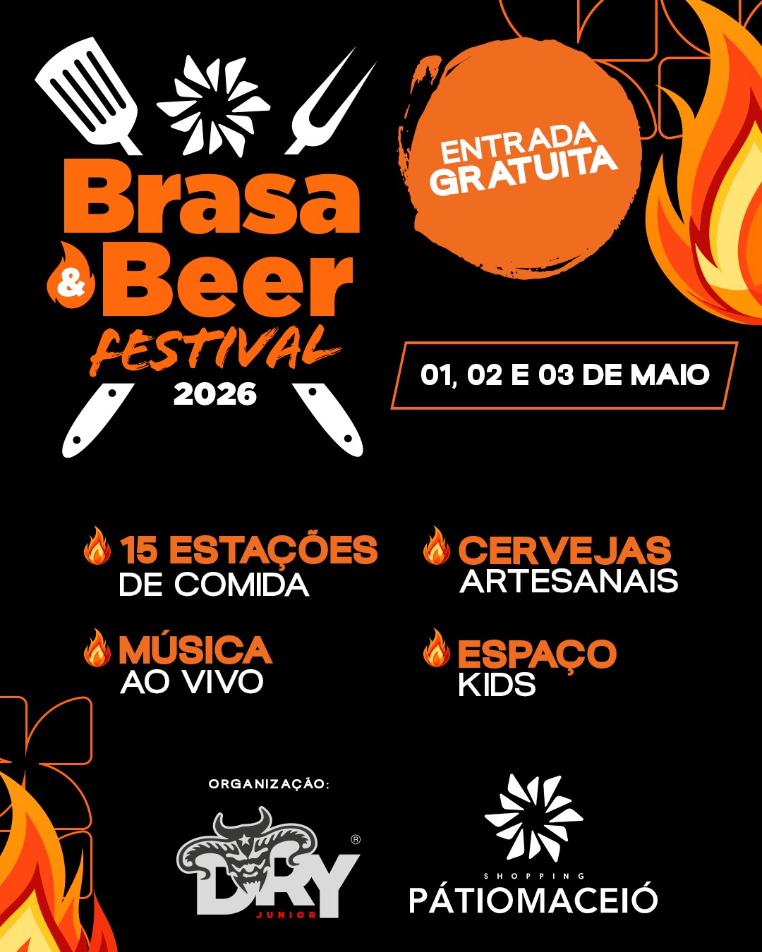 “Somos o maior centro de lazer da parte alta da cidade, com uma agenda completa de entretenimento para toda a família e o Festival Brasa & Beer é mais um evento pensado para nosso público. Com opções gastronômicas para diferentes perfis, a festa é perfeita para celebrar o feriadão em família ou com amigos”, convida Gabriel Araújo, gerente de Marketig do Shopping Pátio Maceió