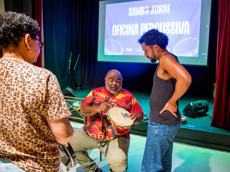 Samba da Periferia leva oficina percussiva e debate sobre fé e cultura ao Theatro Homerinho com ações do PNAB