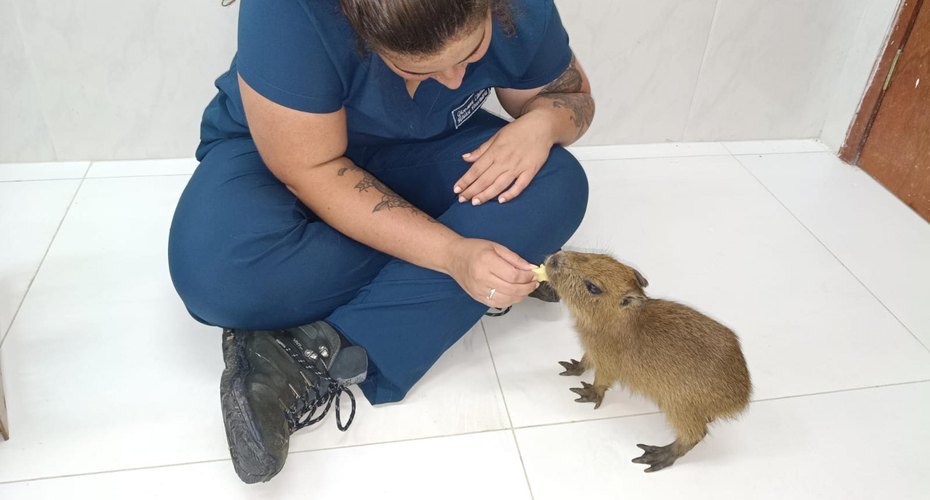 Filhote de capivara tratado no Cetas ganha novo lar em zoológico em Fortaleza