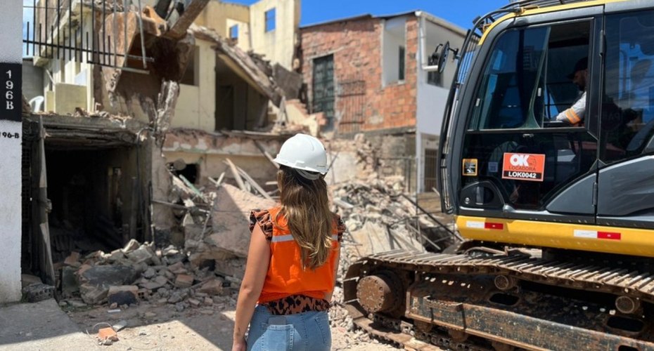 Imóvel de dois pavimentos é demolido na Levada por risco de colapso
