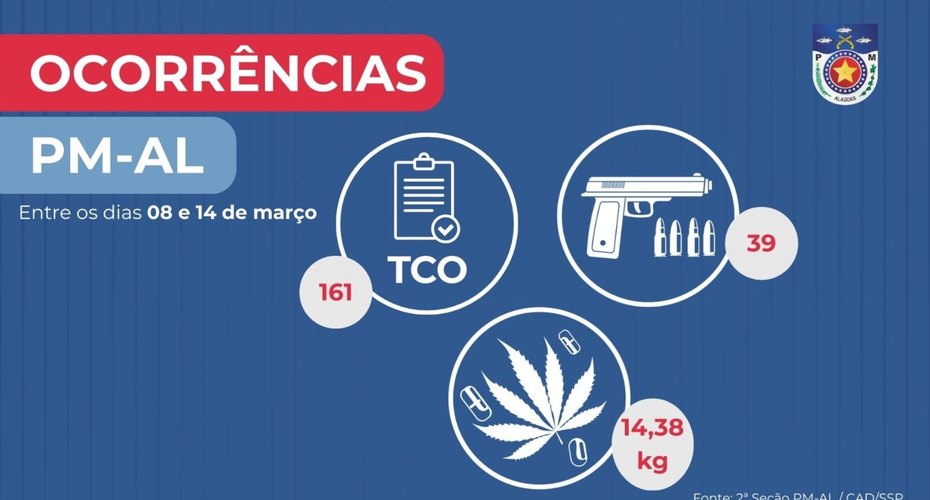 PM-AL apreende 39 armas de fogo e 14 quilos de drogas em uma semana
