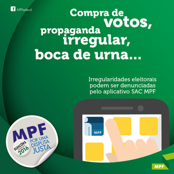 No período eleitoral muitos cidadãos buscam o Ministério Público Federal em Alagoas (MPF/AL) para denunciar irregularidades cometidas por candidatos. O aplicativo "SAC MPF" é uma importante ferramenta para que o eleitor denuncie, em tempo real, as irregularidades que encontra. Além de denúncias, o cidadão pode solicitar e pedir informações processuais por meio do aplicativo gratuito, já disponível para smartphones com sistemas iOS e Android.