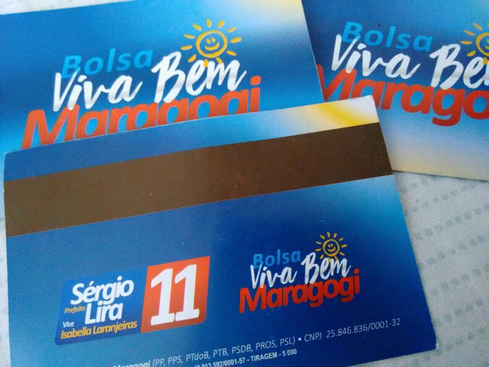 Distribuindo cartões, onde no verso simula uma tarja eletrônica, o candidato tenta manipular o eleitor afirmando que a partir de janeiro cada maragogiense de baixa renda receberá um benefício em dinheiro. A tiragem do "cartão" é de cinco mil unidades.