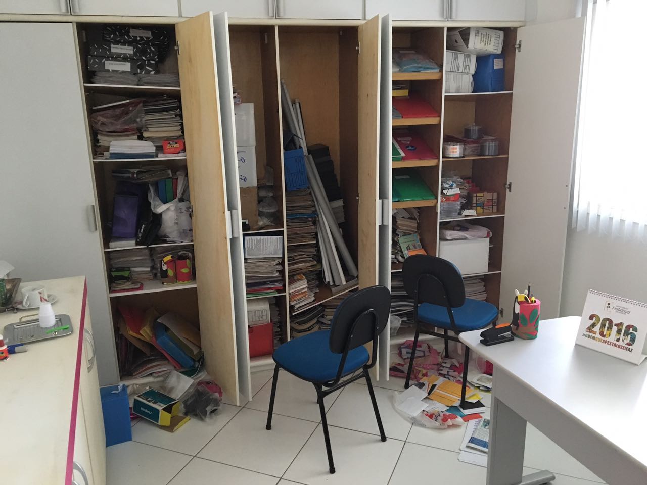 Num primeiro levantamento foi verificado que os arrombadores levaram 5 CPUs, 6 monitores, um ventilador, pastas de documentos e R$ 170,00.