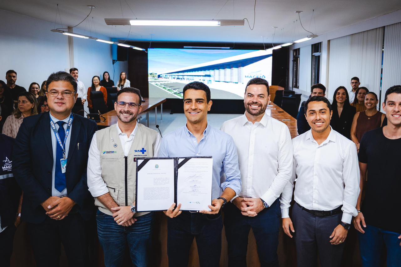O presidente da Câmara, Chico Filho, e os vereadores Jônatas Omena, David Empregos e Caio Bebeto também firmaram o termo, que garante um importante incremento à estrutura de saúde pública em Maceió.